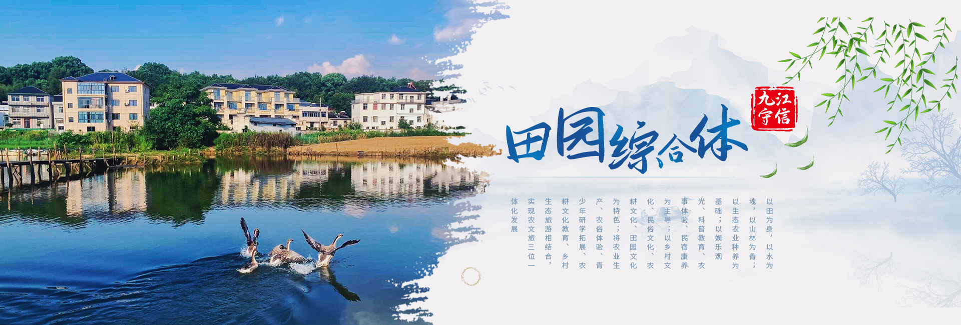 九江守信田園綜合體以田為身,以水為魂,以山林為骨;以生態(tài)農(nóng)業(yè)種養(yǎng)為基礎;以娛樂觀光、科普教育、農(nóng)事體驗、民宿康養(yǎng)為主導;以鄉(xiāng)村文化、民俗文化、農(nóng)耕文化、田園文化為特色;將農(nóng)業(yè)生產(chǎn)、農(nóng)俗體驗、青少年研學拓展、農(nóng)耕文化教育、鄉(xiāng)村生態(tài)旅游相結(jié)合,實現(xiàn)農(nóng)文旅三位一體化發(fā)展,成為生態(tài)性、主題性、復合型農(nóng)莊公園模式。